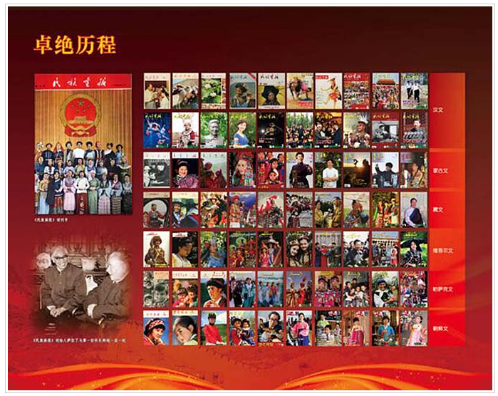 《民族畫(huà)報(bào)》創(chuàng)刊于1955年2月,周恩來(lái)總理題寫(xiě)刊名。《民族畫(huà)報(bào)》用漢、蒙古、藏、維吾爾、哈薩克、朝鮮等6種文字出版,發(fā)行全國(guó)各省市區(qū)及世界50多個(gè)國(guó)家和地區(qū),一直與《人民畫(huà)報(bào)》《解放軍畫(huà)報(bào)》并成為“中國(guó)三大畫(huà)報(bào)”。2013年獲“中國(guó)百?gòu)?qiáng)期刊”稱號(hào)