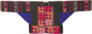 北京服裝學(xué)院民族服飾博物館藏彝族五彩棉拼布對(duì)襟女上衣。