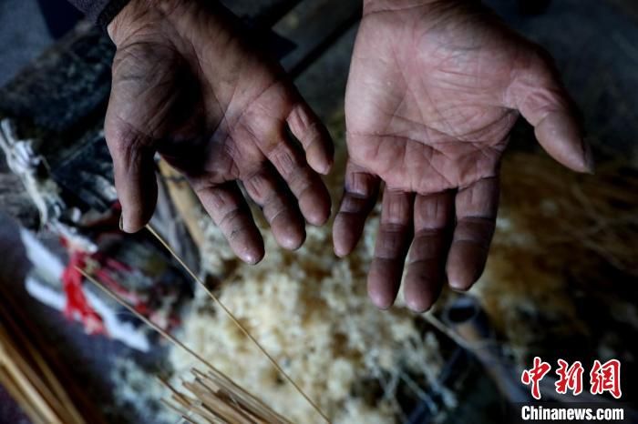 竹編手藝是個(gè)技術(shù)活,更是個(gè)傷手的活。黃大青傷痕累累的雙手,便是竹條經(jīng)年累月留下的“印記”。