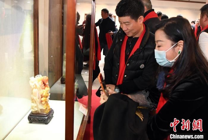 中國工藝美術大師葉子賢壽山石雕傳承展吸引觀眾觀看?!∮浾邉⒖筛?攝