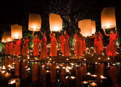“奧瓦薩”時間在傣歷1 2月1 5日(陽歷9月中旬)。這一天,表示從“關門節(jié)”以來的安居齋戒期已滿,男女老幼皆盛裝去佛寺里拜佛,以食物、鮮花、蠟條、錢幣獻佛,向佛祖懺悔,祈求佛祖賜福降平安,同時舉行盛大的娛樂集會,“章哈”演唱,放高升、晚上放焰火、放孔明燈等,慶祝開門節(jié)。此時,雨季已過,稻谷收割完畢,故也稱為慶祝豐收的節(jié)日。