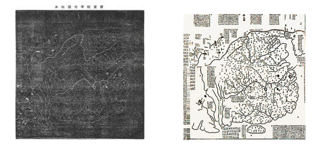 唐代地理學(xué)家賈耽采用裴秀制圖法組織畫工繪制《海內(nèi)華夷圖》,幅面約十平方丈,古今對照,雙色繪畫,注重少數(shù)民族部分,是巨幅唐代中國全圖。《進(jìn)海內(nèi)華夷圖及古今郡國縣道四夷述表》云:“唐臣聞地以博厚載物,萬國棋布;海以委輸環(huán)外,百蠻繡錯。中夏則五服九州,殊俗則七戎六狄,普天之下,莫非王臣?!?宋代《華夷圖》被簡化成縱橫各約80厘米,刻于《禹跡圖》背面;圖上不畫方格,有山脈、河流、長城和各州的名稱,其位置大體與實際相近。山脈用人字形表示,河流為單曲線;河流名稱注記在河源處,囊括眾多異族名稱。西安碑林博物館這塊作為印刷用的兩面刻有地圖的石版,是中國現(xiàn)存最早的石版地圖。唐代巨幅彩繪《海內(nèi)華夷圖》和宋代石刻《華夷圖》不僅標(biāo)志著中世紀(jì)中國制圖學(xué)上最高成就,而且是中國多民族國家的象征。