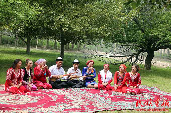 據(jù)色帕巴依鄉(xiāng)黨委委員阿依木古麗·艾山卡德介紹,該鄉(xiāng)在鄉(xiāng)中心小學(xué)專門開設(shè)課程教學(xué)生學(xué)彈庫姆孜琴,并積極舉辦“我為庫姆孜代言”活動,積極培養(yǎng)庫姆孜傳承人。此外,鄉(xiāng)里還專門組建有庫姆孜彈唱隊?!拔覀兝冒偃瘴幕瘡V場和日常的演出走村串巷,積極參加縣宣傳部開展的各項文體活動。今年2月開展的群眾大會,把庫姆孜音樂重新填詞,配合惠民政策宣傳,將傳播民族文化與群眾思想政治工作相結(jié)合?!蓖瑯?,在烏恰縣吾合沙魯鄉(xiāng)恰提村,當(dāng)?shù)伛v村工作隊積極組織20名返鄉(xiāng)學(xué)生開辦“庫姆孜彈唱文藝培訓(xùn)班”,廣泛調(diào)動返鄉(xiāng)大學(xué)生加入到文化傳承的行列中。