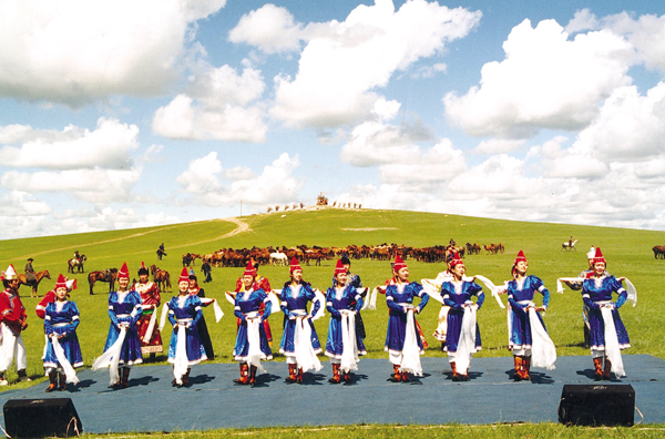 內(nèi)蒙古烏蘭牧騎的演員,吹拉彈唱跳,幾乎個(gè)個(gè)是多面手。從以前騎馬下鄉(xiāng)到現(xiàn)在坐車下鄉(xiāng),方式雖然有變,但為農(nóng)牧民演出的熱情沒(méi)有變。鄂溫克自治旗烏蘭牧騎在當(dāng)?shù)貫檗r(nóng)牧民演出都是公益性的,一年最少也有100多場(chǎng)。但自然地,由上級(jí)指派、旅游接待、大型晚會(huì)、出訪演出,則收一些相應(yīng)費(fèi)用。全年下來(lái)300多場(chǎng)。他們的演出節(jié)目,一般都有舞蹈、獨(dú)唱、重唱、馬頭琴合奏、民歌聯(lián)唱等,包括《敖包相會(huì)》、《萬(wàn)馬奔騰》等馬頭琴名曲,也有他們自己創(chuàng)作的《山林回想》、《鄂溫克大地》等獲獎(jiǎng)歌舞劇目。