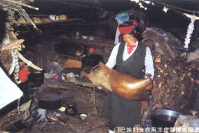 門(mén)巴族婦女在用羊皮囊提煉酥油