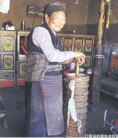 門(mén)巴族婦女在打酥油