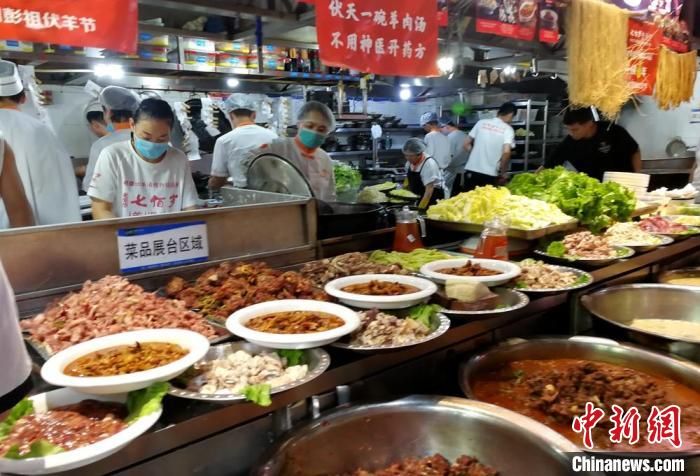 記者走訪徐州市區(qū)大街小巷發(fā)現(xiàn),各大餐館、飯店提前備足了貨源,店方更是拉起橫幅,布置花籃,紛紛推出特色伏羊菜品迎賓納客。11日中午,徐州七百歲羊肉館濱湖店店長張輝介紹,飯店在伏羊節(jié)期間預計每天要用掉大概15只羊的鮮羊肉。店內包間、大廳空桌早在一周前就被預訂滿。當天一早,附近很多市民就帶著鍋碗來店里打羊肉湯。中午,由于吃伏羊的客人較多,一樓大廳的餐位已經(jīng)翻臺多次。“伏羊節(jié)第一天,單獨他們這一個店面最少接待顧客50桌近600人次。