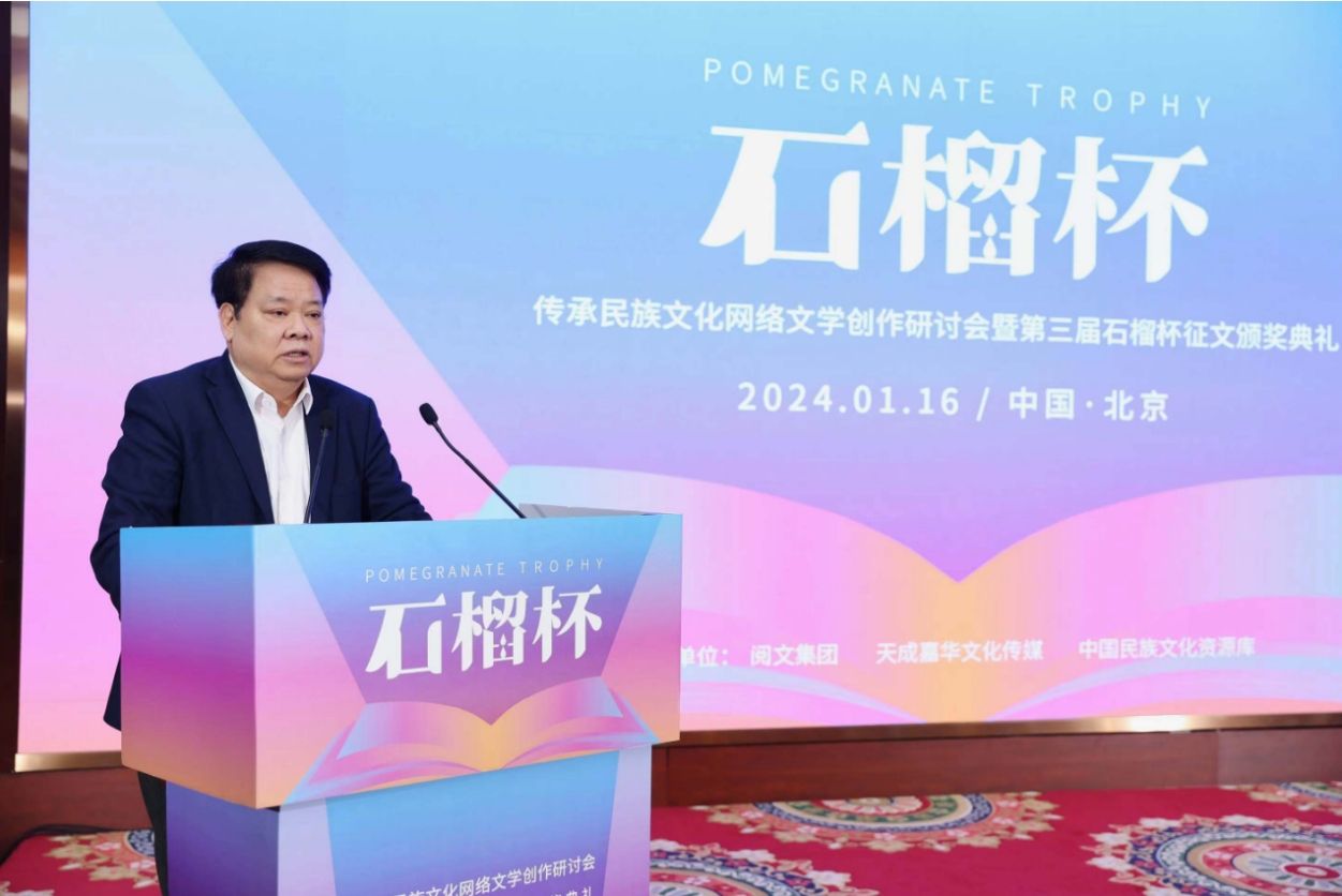 1月16日,由閱文集團(tuán)、北京天成嘉華文化傳媒主辦的“傳承民族文化網(wǎng)絡(luò)文學(xué)創(chuàng)作研討會(huì)暨第三屆石榴杯征文頒獎(jiǎng)典禮”在北京民族文化宮舉行?;顒?dòng)貫徹國(guó)家民委和中國(guó)作協(xié)聯(lián)合發(fā)出的《關(guān)于以鑄牢中華民族共同體意識(shí)為主線推動(dòng)新時(shí)代民族文學(xué)事業(yè)高質(zhì)量發(fā)展的意見》的精神,旨在突出民族團(tuán)結(jié)主題,鼓勵(lì)民族題材創(chuàng)作,挖掘具有市場(chǎng)開發(fā)潛力的網(wǎng)文作品,推動(dòng)“民族 IP”轉(zhuǎn)化。