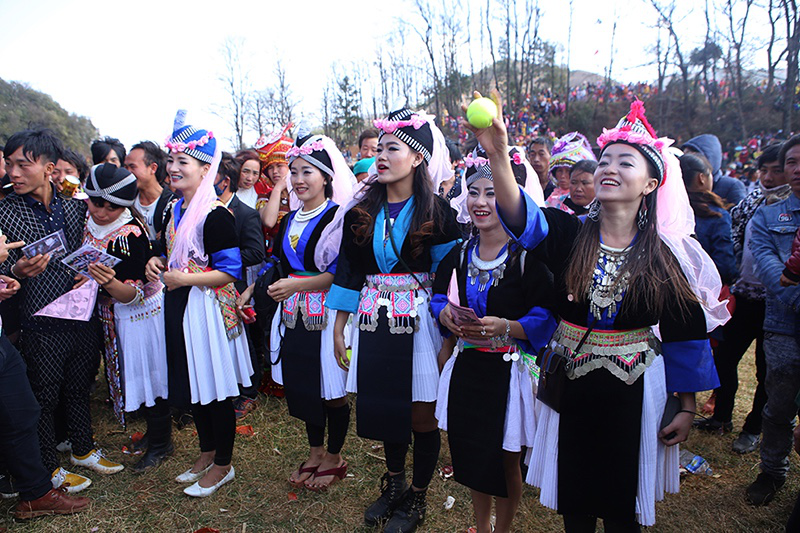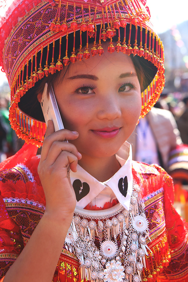 由于在歷史上經(jīng)歷長時(shí)間、大范圍的遷徙,苗族文化形成了較強(qiáng)的環(huán)境適應(yīng)能力和流動變遷特征。節(jié)日作為民族文化的凝集點(diǎn),慶祝方式和形態(tài)也處于動態(tài)的演變和傳承之中。在大布紅的花山場,一個(gè)從老撾過來的苗族女子樂隊(duì)讓當(dāng)?shù)氐拿缱迦烁械胶闷妗f著同樣的西部苗語,卻穿著略顯不同的衣服。她們排成一行,教人們一來一往地扔繡包,一時(shí)間圍觀者無數(shù)。不消多久,女子樂隊(duì)手中的CD就在人群中銷售一空。