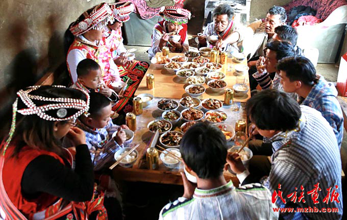 “過(guò)去我們一家吃除夕團(tuán)圓飯,有點(diǎn)肉就不錯(cuò)了,哪會(huì)有如此豐盛的宴席。你看如今這滿(mǎn)桌子十幾道菜,吃不完、喝不完,全靠黨和國(guó)家的政策好啊?!痹谡劦酱汗?jié)的變化時(shí),云南省維西傈僳族自治縣保和鎮(zhèn)臘八底村的蜂大興深有體會(huì)。
