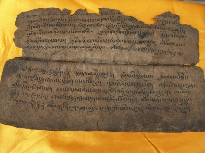 一般認為普米族沒有本民族文字,但歷史上普米族曾使用過簡單的圖畫文字,這是一種萌芽的原始刻畫文字,見于房屋壁畫、神龕、法器、房梁等地?,F(xiàn)學界說的“韓規(guī)文”是以藏文字母為基礎(chǔ),用以記錄普米語的文字符號。韓規(guī)文主要用于抄寫宗教祭祀經(jīng)文,認知度不高,一般只有普米族的巫師“韓規(guī)”才能掌握使用(圖為韓規(guī)文經(jīng)書殘片,蒙哥提圖)。普米族現(xiàn)今有一套拼音文字,該套拼音文字以寧蒗彝族自治縣新營盤鄉(xiāng)牛窩子村的普米語為基礎(chǔ)音,在寧蒗普米傳統(tǒng)文化保護協(xié)會及香港大學丁思志教授的努力下,經(jīng)修訂的拼音文字最終面世,并且有了普米語教材。普米族拼音文字設(shè)計的構(gòu)想最早是在1995年由香港大學大學丁思志教授提出,同年,普米語聲母表首稿完成。該方案歷經(jīng)修改,最終的方案共收錄42個聲母,能夠滿足各地普米方言的使用需求。近年,丁思志教授又創(chuàng)制了一套有別于拼音文字的新創(chuàng)文字。新創(chuàng)文字是一種表意文字,該套文字以牛窩子普米語為基礎(chǔ)音,以漢字表意,輔之以自創(chuàng)的虛詞而成,從一定程度上超越了普米語言空間限制,解決了不同普米方言區(qū)因為口音差異而形成的交流障礙。