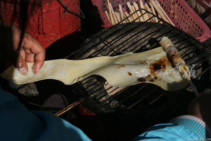 街邊小攤上的烤乳扇,風(fēng)味別具一格,烤的時(shí)候要涂抹玫瑰糖