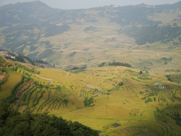元陽哈尼族開墾的梯田隨山勢地形變化,因地制宜,坡緩地大則開墾大田,坡陡地小則開墾小田,甚至溝邊坎下石隙也開田,因而梯田大者有數(shù)畝、小者僅有簸箕大,往往一坡就有成千上萬畝。元陽梯田規(guī)模宏大,氣勢磅礴,綿延整個紅河南岸的紅河、元陽、綠春及金平等縣,僅元陽縣境內(nèi)就有17萬畝梯田,是紅河哈尼梯田的核心區(qū)。元陽縣境內(nèi)全是崇山峻嶺,所有的梯田都修筑在山坡上,梯田坡度在15度至75度之間。以一座山坡而論,梯田最高級數(shù)達3000級,這在中外梯田景觀中是罕見的。元陽哈尼梯田主要有3大景區(qū):壩達景區(qū)包括箐口、全福莊、麻栗寨、主魯?shù)冗B片14000多畝的梯田;老虎嘴景區(qū)包括勐品、硐浦、阿勐控、保山寨等近6000畝梯田;多依樹景區(qū)包括多依樹、愛春、大瓦遮等連片上萬畝梯田。如此眾多的梯田,在茫茫森林的掩映中,在漫漫云海的覆蓋下,構(gòu)成了神奇壯麗的景觀。這些景區(qū)就是目前準(zhǔn)備申報世界遺產(chǎn)的核心保護區(qū)。