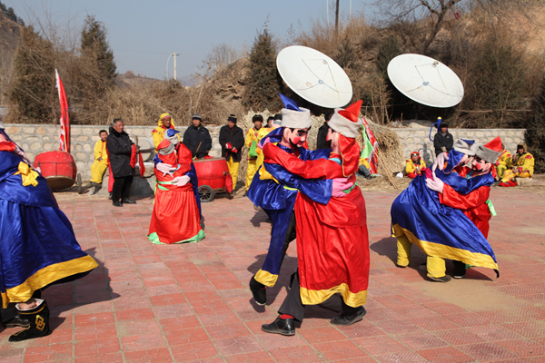 “二貴摔跤”,表演者實(shí)為一人,穿戴巧妙制成的道具,就可以扮演兩個(gè)扎小辮的頑皮兒童扭打摔跤。單人扮雙人摔跤,模仿得維妙維肖,一時(shí)難辨真假,風(fēng)趣幽默。