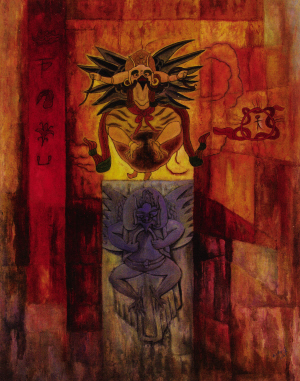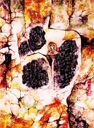 記者:你這次展出的作品都是以比較抽象的手法在表現(xiàn)東巴文化,以后在題材和手法上會不會有一些轉(zhuǎn)變?