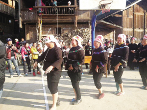 圖為該村的苗族婦女們表演“大女子主義”舞蹈。