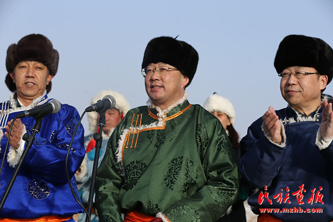 錫林郭勒盟委副書記、行署盟長(zhǎng)霍照良(中)宣布那達(dá)慕開(kāi)幕