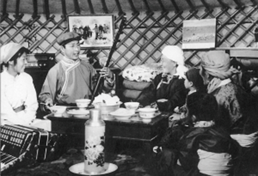 烏蘭夫同志接見烏蘭牧騎演員