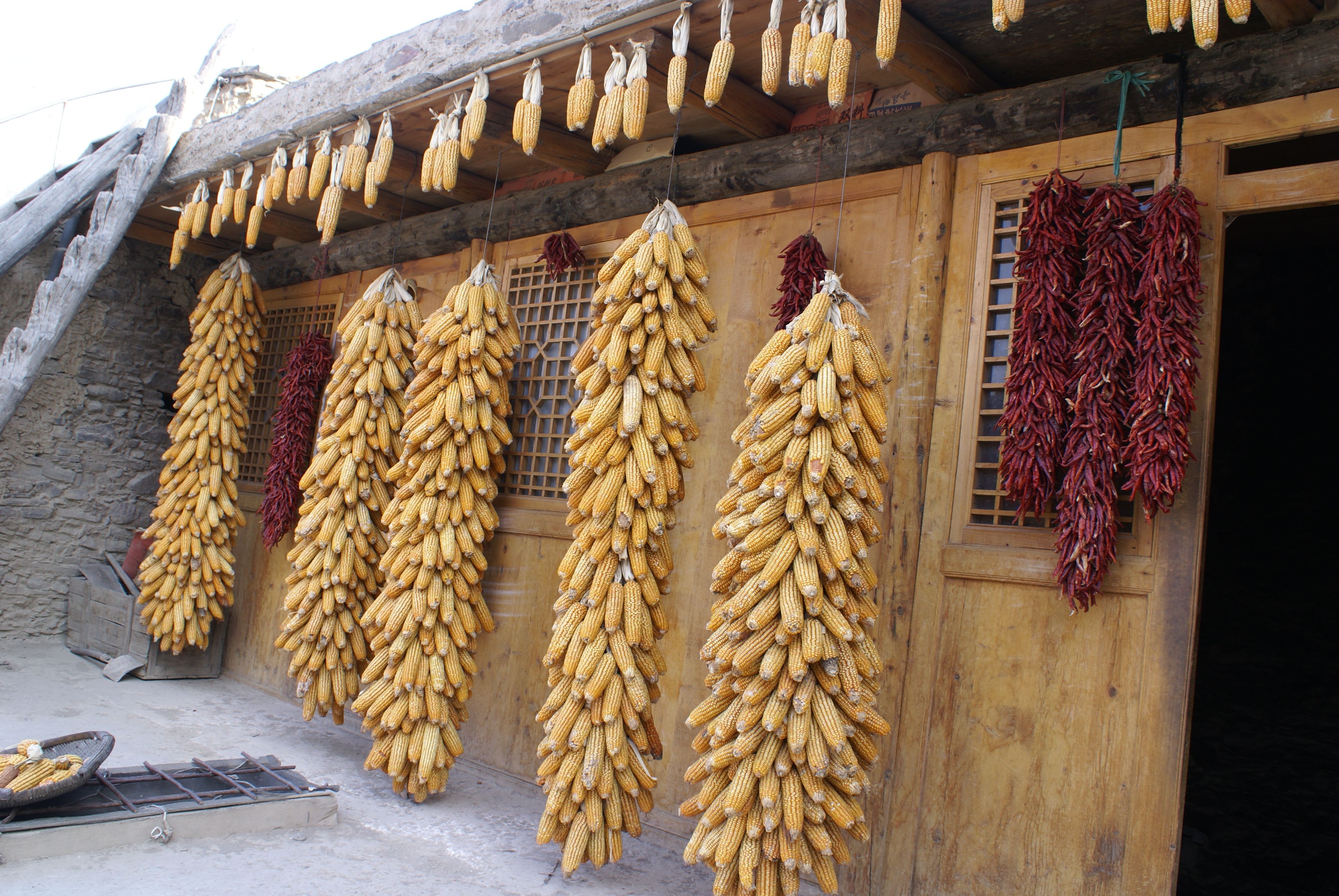 圖片名稱:羌族人在自家小院里儲(chǔ)存的食物