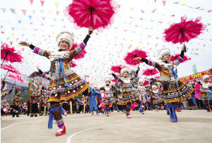“打同年”是融水縣苗、侗和瑤等少數(shù)民族的文化傳統(tǒng),一般是村與村之間相約在春節(jié)期間進(jìn)行,聯(lián)誼雙方互稱“同年”。整個活動一般持續(xù)三天,包括進(jìn)寨儀式、蘆笙聯(lián)歡、圍同年儀式、聯(lián)歡晚會、百家宴等。雙方通過吹蘆笙、跳蘆笙舞、對歌等多種傳統(tǒng)方式聯(lián)歡,增進(jìn)交往交流交融。