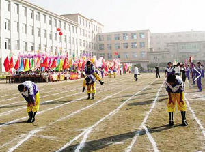 陣擺長龍跑馬城。“分兵遣將選良才,陣擺長龍對(duì)面排。正欲齊心奪勝券,格格送信出城來。”這首詩描寫的是滿族兒童春季玩的一種游戲——“跑馬城”。玩這種游戲時(shí),孩子們分成人數(shù)相同的兩隊(duì)橫列,面向而站。玩時(shí),甲隊(duì)先誦兒歌一句,乙隊(duì)接下句,一遞一句:“機(jī)機(jī)靈,跑馬場(chǎng),馬城開,打發(fā)格格送信來!”“你要誰?我要某某某!”被點(diǎn)到名字的兒童立刻向?qū)Ψ經(jīng)_去,對(duì)方陣營則手臂相連形成一道防線,沖撞者如果沖破對(duì)方的防線,就從對(duì)方陣營中挑選一人帶回自己的隊(duì)伍;如果沒有沖破對(duì)方的防線,沖撞者就被對(duì)方俘虜了。然后雙方再進(jìn)行下一輪“對(duì)話”和“沖營”。游戲結(jié)束時(shí),以剩下人數(shù)多的一方為勝方。這種游戲最適合男孩玩,他們往往玩得滿頭大汗,樂此不疲!