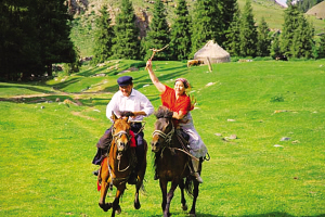 座談會結(jié)束后,大家又來到新地溝草原,舉行哈薩克族民間傳統(tǒng)體育活動,哈薩克族群眾紛紛參加姑娘追、摔跤、叼羊、賽馬等活動。一時(shí)間人聲鼎沸,歡歌笑語,草原上呈現(xiàn)出一片歡悅的景象。