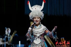 古樸的苗語、爵士的節(jié)奏碰撞出奇妙的藝術(shù)魅力。在第三篇章《未來的歌》中,《苗》《等待新娘》《NEW》《今宵醉》《苗嶺謠》《走了一山又一山》《干一杯》等曲目依次精彩上演,激情的旋律將本場音樂會推向高潮,現(xiàn)場觀眾深受感染。在蘆笙合奏《歡樂的苗家》歡快的旋律中,本場音樂會圓滿落下帷幕。