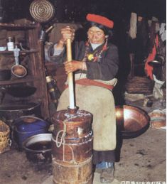 藏族生活在號稱“地球第三極”的青藏高原上,高寒的高原氣候,嚴酷的生存環(huán)境,造就了藏民族勇敢剛毅的民族個性,也形成了藏民族獨具高原特色的飲食文化,藏鄉(xiāng)的酥油茶便是其中一朵奇葩。酥油茶是藏鄉(xiāng)群眾日常生活所必需的一種飲料,也是藏族人民待客、禮儀、祭祀等活動不可或缺的用品,極具民族特色和文化內(nèi)涵。剛進藏的漢族干部,要適應高原環(huán)境,首先要過生活關,其中重要的一條就是能不能喝酥油茶。顧名思義,酥油茶由酥油、茶和食鹽三種原料做成。
