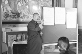 此次展覽將持續(xù)至2020年1月。為了讓觀眾更加直觀地了解唐卡藝術(shù),10月20日,主辦方在中國藏語系高級佛學(xué)院舉辦了繪畫唐卡體驗活動。