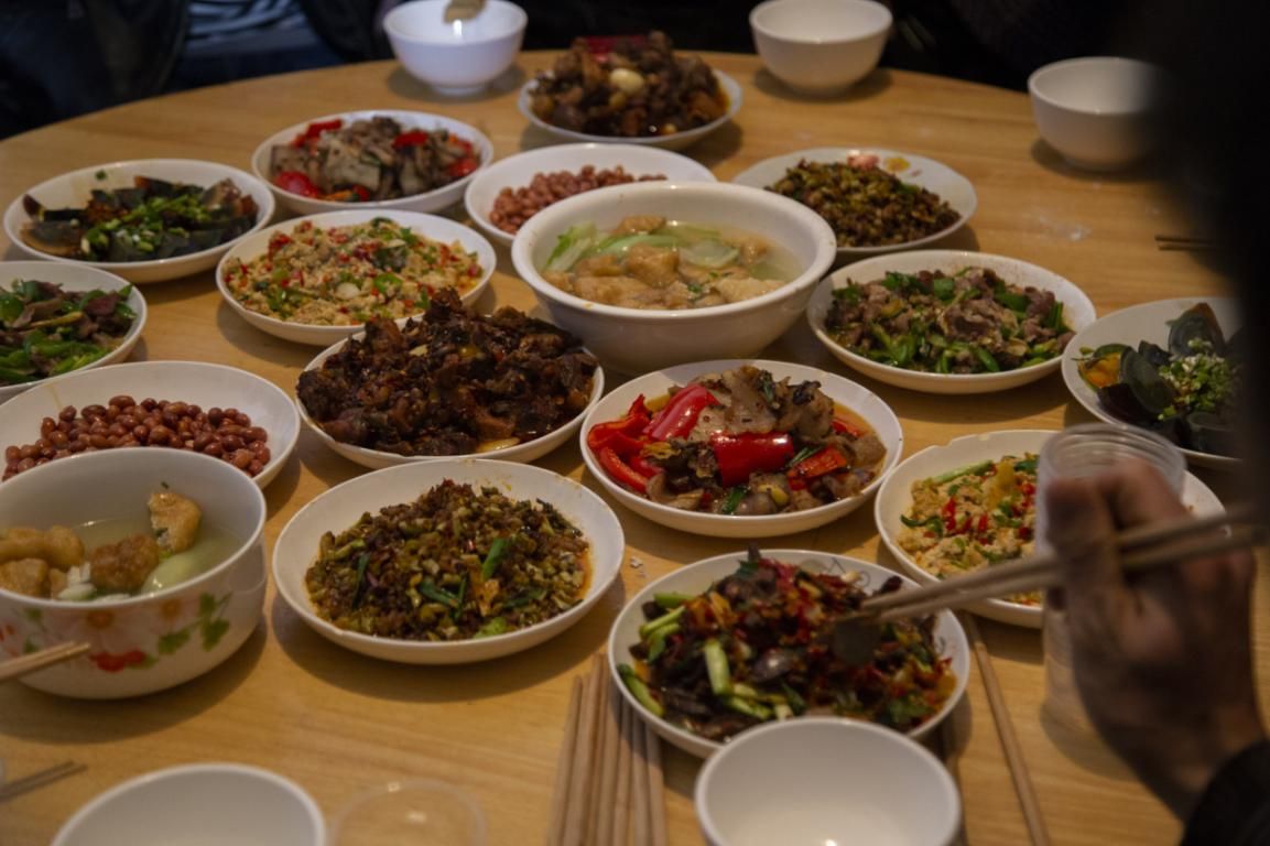 敬灶始,先在堂后做法事后,再端起文書到灶房灶頭做法事,文書燒在灶中。領(lǐng)牲法事有的戴面具,有的不戴面具。領(lǐng)牲都極具戲劇形態(tài),其中有角色對白,邊唱邊舞,壇場打諢,語言幽默,觀眾喜愛。一般都把洗凈的豬抬進(jìn)中堂,用司刀把豬尾巴割掉,掏出豬腰,請出殺豬匠來說一些奉承言語,燒紙,敬酒。領(lǐng)牲的程序,首先去豬頭,后把三絲肉、合同肉;扎案肉;豬尾巴;豬腰子,頭、蹄腳用來敬菩薩,五心肝肚也要拿來敬菩薩。
