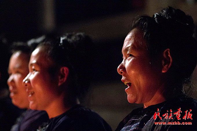 在坐滿了學生的教室里,胡官美耐心地先把歌詞用侗語一遍一遍地教他們,等到大家把歌詞記牢了,再開始把唱歌的調(diào)兒教給孩子們。這首快樂的兒歌是孩子們最喜歡的歌,在鼓樓、在上學路上、在火塘旁、在舞臺中央,他們開心地齊聲大唱。歌聲里,年過六旬的胡官美仿佛又回到了童年。年復一年的歌聲里,胡老師送走了五批合唱團的學員,共130余名。除了胡老師自己,她的大女兒楊秀珠和大女婿楊秀豪也都在合唱團擔任民族音樂老師。