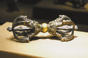 本次展覽從故宮博物院藏上萬件法器文物中精選各門類不同材質、不同工藝的藏傳佛教法器113件,大致按功用分類,以“持驗法器”“供養(yǎng)法器”“禮敬法器”三個單元來進行展示,以期公眾對清代宮廷藏傳佛教法器有更全面、更系統(tǒng)的了解。這些文物大多是乾隆時期的藝術精品,充分展示了清代宮廷的最高工藝水平。