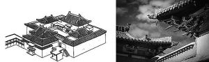 夏魯寺采用漢藏建筑風格結(jié)合制式(左),施以綠色琉璃瓦的漢式歇山頂及檐下斗拱(右)。閔天怡供圖