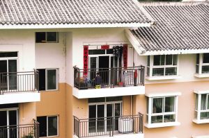 搬進城中安置房后,在陽臺上依然制衣的婦女。