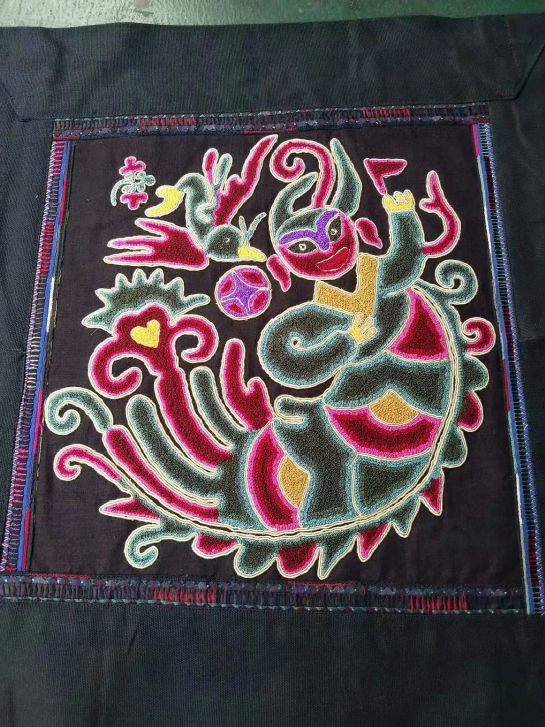 臺(tái)江苗繡的圖畫紋飾豐富,有造型獨(dú)特的飛禽走獸、花鳥魚蟲,還將人與大自然的其他動(dòng)植物在繡片上融為一體,體現(xiàn)了苗族人民對自然萬物的崇拜,同時(shí)也折射出苗族屢經(jīng)遷徙的歷史變遷。