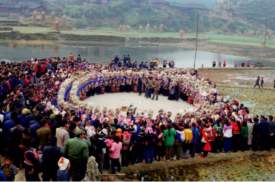 貴州雷山苗族至今仍保留“以十月為歲首”的紀(jì)年法。每年的農(nóng)歷十月,雷山苗寨一派歡騰,開展極富特色的辭舊迎新活動(dòng)。