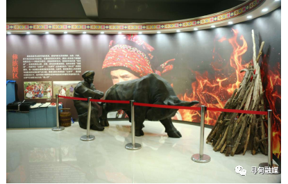 2.彝族展區(qū): 彝族是最早定居尋甸的民族,縣境內(nèi)的支系有黑彝、白彝、干彝,距今有3000多年的歷史。在漫長(zhǎng)的歷史長(zhǎng)河中,彝族人民創(chuàng)造了璀璨的地域文化——神秘的古彝文,原始的祭祀禮儀,別致的傳統(tǒng)民居“垛木房”,古老的彝族山歌、古歌、彝族舞蹈,獨(dú)特的婚俗“拖媳婦”,傳統(tǒng)節(jié)日“立秋節(jié)”、“火把節(jié)”以及被美譽(yù)為“活化石”的彝族服飾,每一項(xiàng)都蘊(yùn)含著極深的文化內(nèi)涵;火把節(jié),象征著彝族人民的激情與戰(zhàn)勝自然災(zāi)害的勇氣和力量;彝族戈濮支系的獨(dú)創(chuàng)“立秋節(jié)”,通過盛大的秋場(chǎng)斗牛、夜間情歌對(duì)唱等形式將豐收的歡樂和喜悅傳遞四面八方。