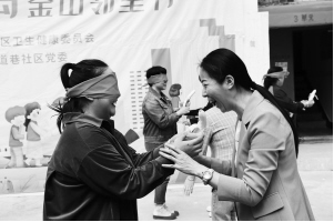為進(jìn)一步弘揚(yáng)睦鄰友好、鄰里相親的傳統(tǒng)美德,阿勒泰市金山路街道以社區(qū)為單元、居民為主體,舉辦了“與鄰為善,以鄰為伴”“讓愛(ài)零距離”等形式多樣的“睦鄰節(jié)”活動(dòng),各社區(qū)還分別表彰了“最好鄰居”“最美婆婆”“模范丈夫”“民族團(tuán)結(jié)之星”等。圖為社區(qū)開(kāi)展的趣味運(yùn)動(dòng)會(huì)——“盲人”吃香蕉游戲。