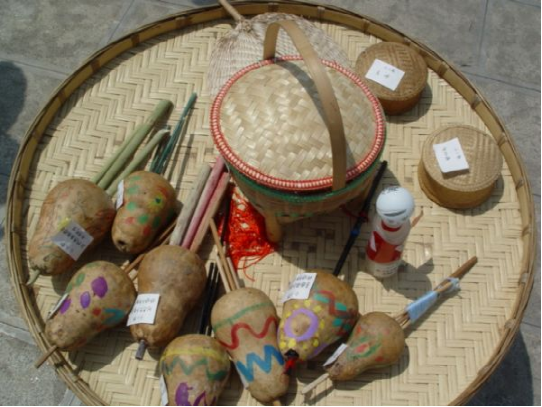 2010年上海世博會活動周期間,一臺名為《記憶云南》的18項非物質(zhì)文化遺產(chǎn)展示成為最吸引眼球的亮點之一。活動現(xiàn)場,18名云南非物質(zhì)文化遺產(chǎn)傳承人和民間藝人展示白族布扎、納西族東巴畫、傣族剪紙、傣族竹編、佤族織錦技藝等制作技藝。其間展示的傣族竹編技藝在民族文化風(fēng)情濃郁,文化底蘊深厚的耿馬傣族佤族自治縣廣為流傳。俗話說傣族“無竹不成家”,自古以來,傣族就和竹子結(jié)下了不解之緣。傣家人生活地區(qū)大多竹資源豐富,他們在飲食上喜歡吃鮮竹筍和用竹筍腌制的酸筍,各種生活用具也多用竹制作而成。在翠竹掩映,綠色蔥籠的耿馬傣族村寨,傣家人尤其愛竹、用竹,并擅長竹編技藝,他們擅用竹子為材料搭橋、蓋屋,住的是竹樓,用的是各式自編的竹器,大至籬、墻、門、毯笆、竹筏、床、桌、柜、席,小至飯盒、帽、扁擔(dān)、簍、提籮、甑子、供桌、鼓凳等,無一不是用竹編織而成。有的竹編還鑲嵌五彩圖案,富麗堂皇,專供佛寺祭掃之用,而各種精美的竹編小物品則是男女青年表達愛情的信物。傣族竹編歷史悠久,世代相傳的竹編技藝,具有鮮明的民族特色。耿馬傣族竹編工藝精細,造型樸實大方,圖案變化美觀,制品種類繁多,是優(yōu)良的實用工藝,其中以笆蘿、飯盒、檳榔盒、提籮、供桌的竹器編織技術(shù)最有代表性。笆蘿是傣語,指的是一種掛在腰間的竹簍。笆蘿編織精巧,美觀適用,既是生產(chǎn)、生活用具,又是精致的裝飾品。傣族婦女身著輕盈飄逸民族服裝,腰系一只笆蘿,走動時笆蘿隨身輕松搖擺,顯得十分樸實、精干、健美、俊俏。更為珍愛之處在于,笆蘿是傣族青年男女間愛情的傳遞物。傣族男子從小學(xué)習(xí)竹編,人人都有一手精湛的竹編技藝,青年男子總是精心編織一只笆蘿送給自己心愛的姑娘,換回一個姑娘回贈的親手織繡的筒帕。所以編織笆蘿和織繡筒帕是傣族青年“編織愛情的技藝”。如果一個小伙子不會竹編,那么他就同姑娘不會織繡一樣,說明他沒有一雙勤勞靈巧的雙手,很難找到心愛的伴侶。耿馬傣族民間竹編漆器工藝歷史悠久,世代傳承其竹編漆器主要有貢桌和提籮,傣語稱“浪擺”和“撒毫”。 “撒毫”和“浪擺”是傣族群眾從事佛教活動時的必需用品,家家戶戶都備有一套。每到潑水節(jié)或開門節(jié)、關(guān)門節(jié)時,傣家老人用“撒毫”裝各種禮佛用品,子女們則用“浪擺”和“撒毫”給父母送齋飯。平時則置于高處,不能亂放東西。僅“撒毫”的制作流程,便可分為選竹、破篾、編制、裝飾等10道工序,裝飾工藝獨特精美,集實用性和觀賞性于一體。由于傣族人民篤信佛教,竹器漆制品較多裝飾荷花、魚、蝴蝶等圖案,寓意祈求佛祖保佑,賜福予人風(fēng)調(diào)雨順、吉慶有余。傣家竹編,既為人們生產(chǎn)生活所必需,也給人美的享受,真是民族工藝百花園的一朵奇葩。