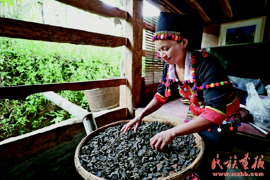 趙臘退的妻子正在制作優(yōu)質的德昂酸茶。