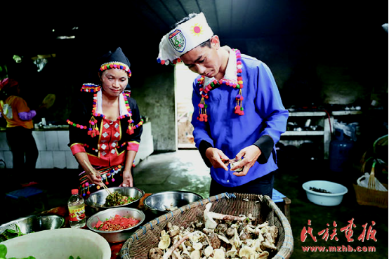 趙臘退辦起了農家樂,與妻子一起為客人準備飯菜。