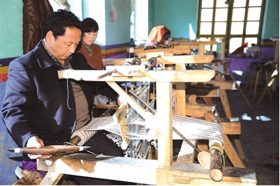 巴桑正在為學徒教授嗶嘰手工編織技藝。李文健 攝