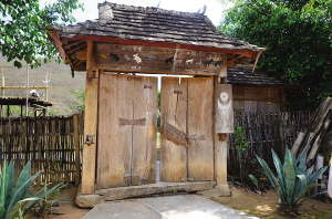 位于云南省西雙版納傣族自治州景洪市嘎灑鎮(zhèn)新寨村的新寨村史館,是一座展現(xiàn)哈尼族傳統(tǒng)文化的小型村史館。該館矗立在寨子邊緣處,是一棟具有哈尼族特色的建筑。院子的門楣上刻著十二生肖,門上的插銷是一塊木板,一伸手就能取下,十分古樸。