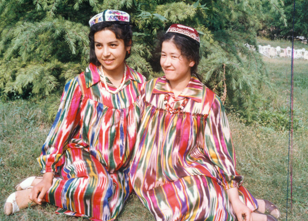 烏孜別克族女性喜愛穿連衣花裙,開領,寬大多褶,不束腰帶。上衣比較短,只及大腿部,無領、無袖、對襟,下擺的正中和正面兩邊都開衩,形成兩片寬帶。襟和寬帶的邊都繡花。出門時還要穿斗篷、蒙面紗,從頭到腳都不能外露。