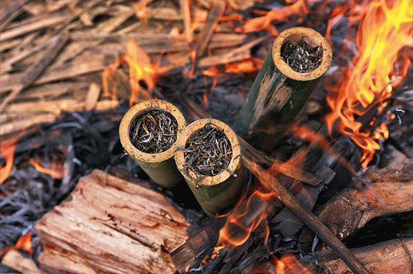德昂族種茶的歷史悠久,茶在德昂族民間不僅是常備的飲料,也是饋贈親友的最好禮品。外出必須砍一段楠竹,削個斜口,放入茶葉注入泉水,用火燒開飲用,別有一番香味。德昂族也飲酸茶,又稱濕茶,古時稱之為谷茶或沽茶。制酸茶時在茶葉中加少許檳榔,放入大竹筒中壓實,密封筒口,存放一至兩個月發(fā)酵后取出,入嘴細嚼,味酸澀,能生津解渴,并有解暑清熱、消食的作用。