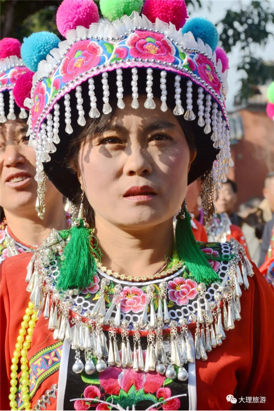 彌渡彝族好賽裝,每逢婚喪嫁娶、趕集、集會(huì)都要比一比穿戴。每年農(nóng)歷正月十五鐵柱廟彝族踏歌會(huì),那是賽裝高潮。