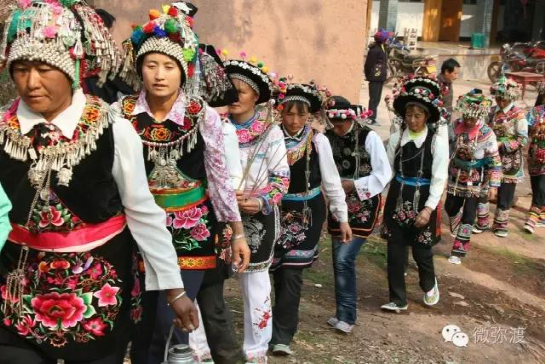 散居于哀牢山上段的彌渡牛街彝族鄉(xiāng)彝族分“迷撒支”和“羅羅潑支”兩個(gè)支系,均為來(lái)自巍山、南澗的南詔后裔?!懊匀鲋А敝饕植加谀菊?、榮華兩個(gè)村委會(huì),而“羅羅潑支”各村委會(huì)均有零星分布。彝族服飾,如果按地域來(lái)劃分,可以分為涼山、烏蒙、紅河三大類,牛街彝族服飾屬于“烏蒙”類。