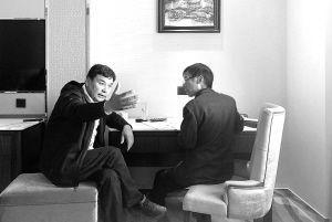 王巨成(右)在采訪庫爾班·尼亞孜。 王巨成供圖