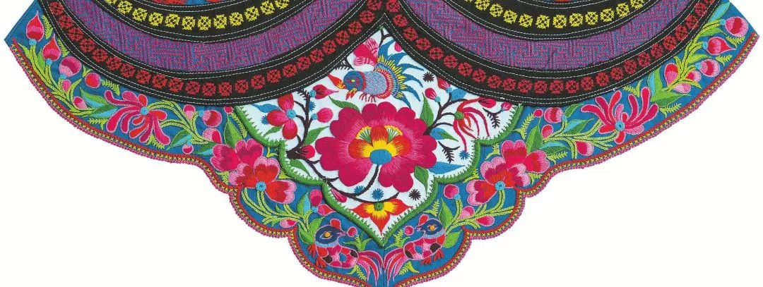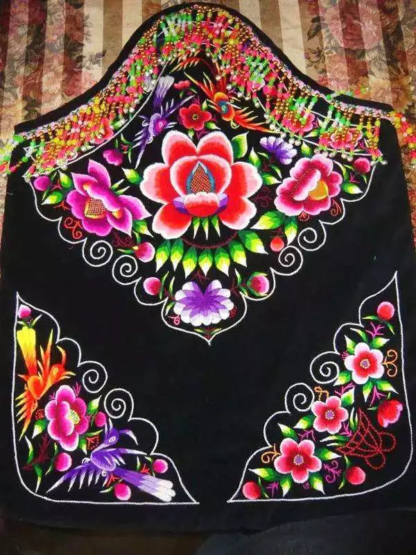 彝族婦女圍腰,是女性審美的結(jié)晶,實(shí)用美觀。圍腰是最能集中體現(xiàn)彝族女性心靈手巧的女紅作品,因此成為青年男子傳統(tǒng)擇偶的重要標(biāo)準(zhǔn)之一。每條彝族圍腰,須經(jīng)過(guò)剪紙、裁剪、刺繡、挑花、配飾等環(huán)節(jié),每一個(gè)細(xì)微的過(guò)程都傾注了彝女的聰明與才智。事實(shí)上,彝族婦女圍腰,還蘊(yùn)含著重要的彝族社會(huì)歷史、文化信息。