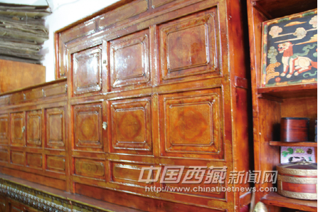 但由于西藏特定的地域分布規(guī)律的限制,森林主要分布于西藏東南部以及喜馬拉雅山南坡的濕潤地區(qū),高原內(nèi)部缺少木材,交通運輸?shù)睦щy,過去經(jīng)濟落后時,只有高層僧侶、貴族或上層人士才用得起精美的藏式家具。所以在藏族家庭中,如果有一套精美的藏桌、藏柜和酥油茶桶,主人則引以為榮。藏式家具成為財富的象征,家具數(shù)代相傳。傳統(tǒng)精美的藏式家具進入尋常百姓家庭,只是近幾十年間的事。